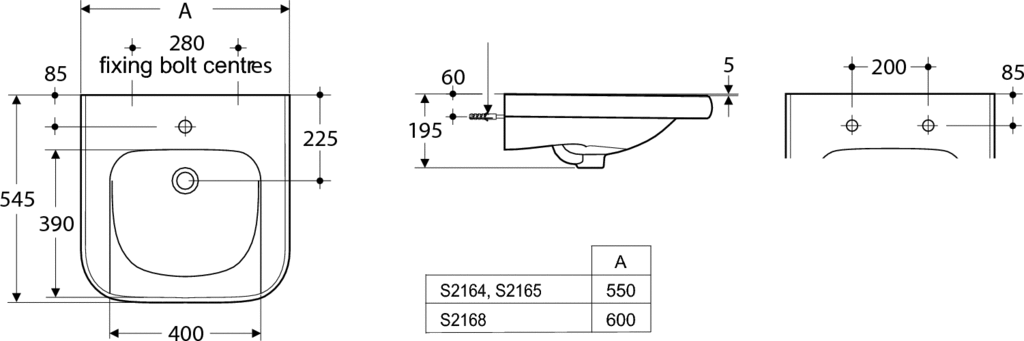 One central tap hole  Siphon is not included Recommended equipment: Wall fixing set E015767 Panel fixing set E006267  Basin fixing set, with 14 cm rag bolts for solid walls E007067.