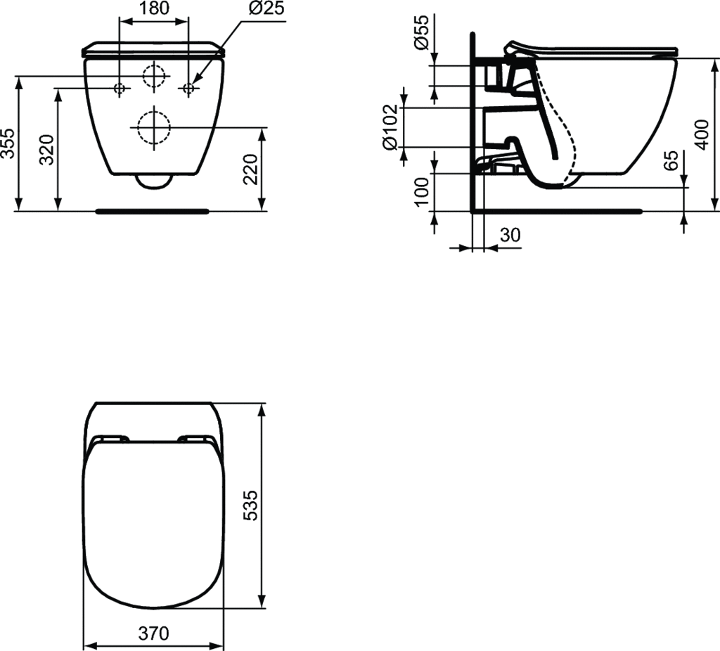 Washdown In carton box EN 997 Including fixation kit TT0299598 (for fully hidden attachment – no lateral holes) Note: AquaBlade® WCs installation with pressure flush valve is not recommended! Necessary equipment: – Seat and cover THIN, metal hinges, duroplast (T352801) – Seat and cover THIN, SOFT CLOSE with Easy Take Off hinges, duroplast (T352701) Recommended equipment: – Holey restrictor (in case nominal full flush volume is more than 6L up to 9L) (WW965956)