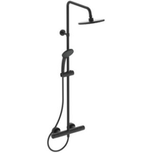 Shower kit system with exposed thermostatic mixer and telescopic pipe